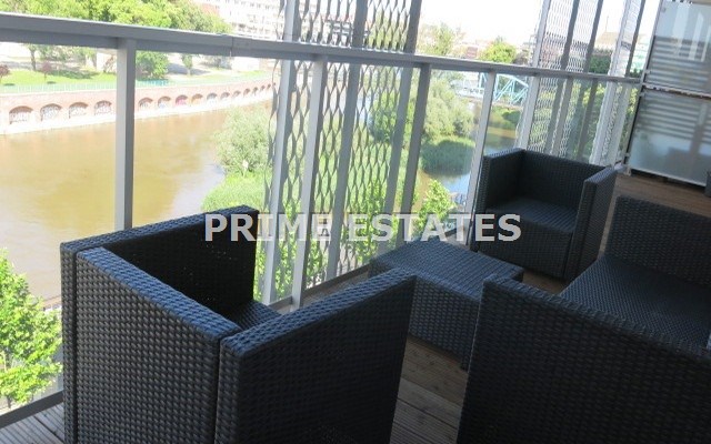 Property description: 2-rooms apartment situated on the 1st floor in the brand new building with the veiw on the river and Univerity. The building has a beautiful shape and superb location and is situated on the banks of the River. The apartment consists of living room with open plan kitchen, bedroom, bathroom and hallway. Apartment is beautifully decorated, with a tasteful interior design. The apartment is fully furnished and equipped. Kitchen with necessary accessories and appliances: fridge-freezer, dishwasher, induction hob, oven. The elegant bathroom, equipped with a washing machine. Another advantage is the balcony with amazing view on the river. The apartment has a pleasant, modern interior, ideal for demanding customers. I would recommend.